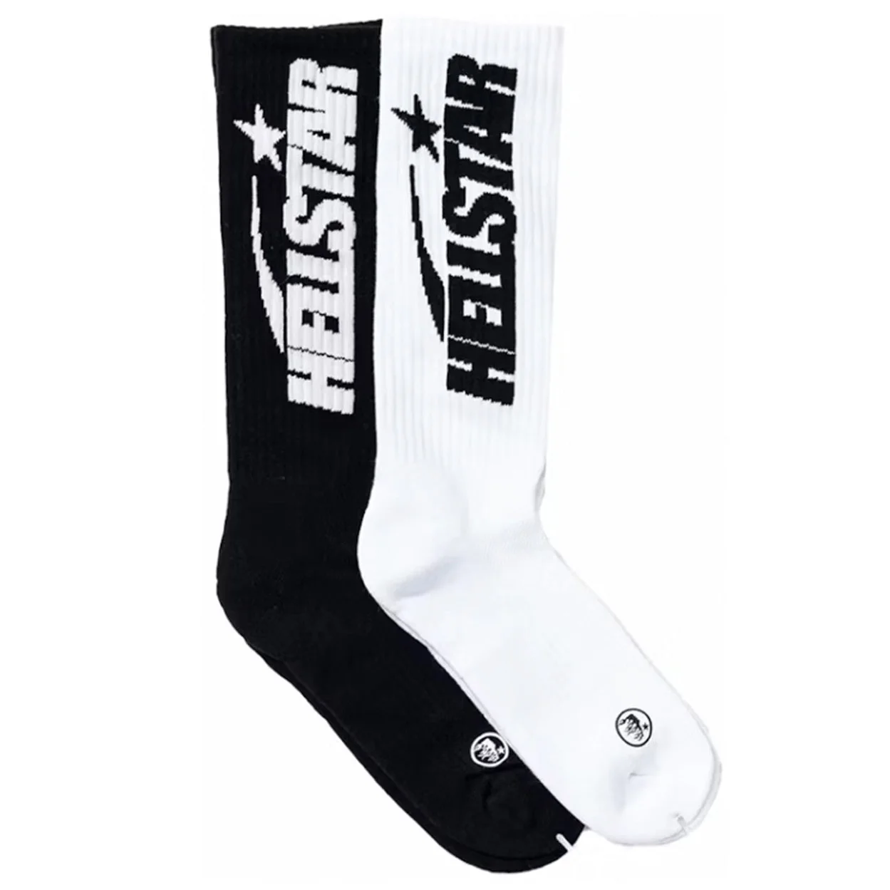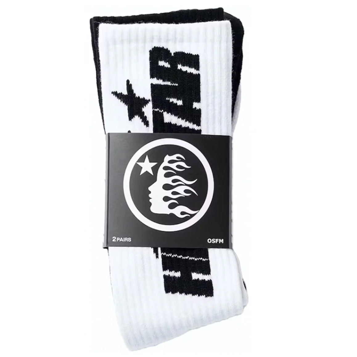 The Hellstar Classic Socks (2 Pack) White/Black deliver everyday comfort with signature Hellstar branding. Crafted from a soft stretch cotton blend, these socks combine durability with clean streetwear style.