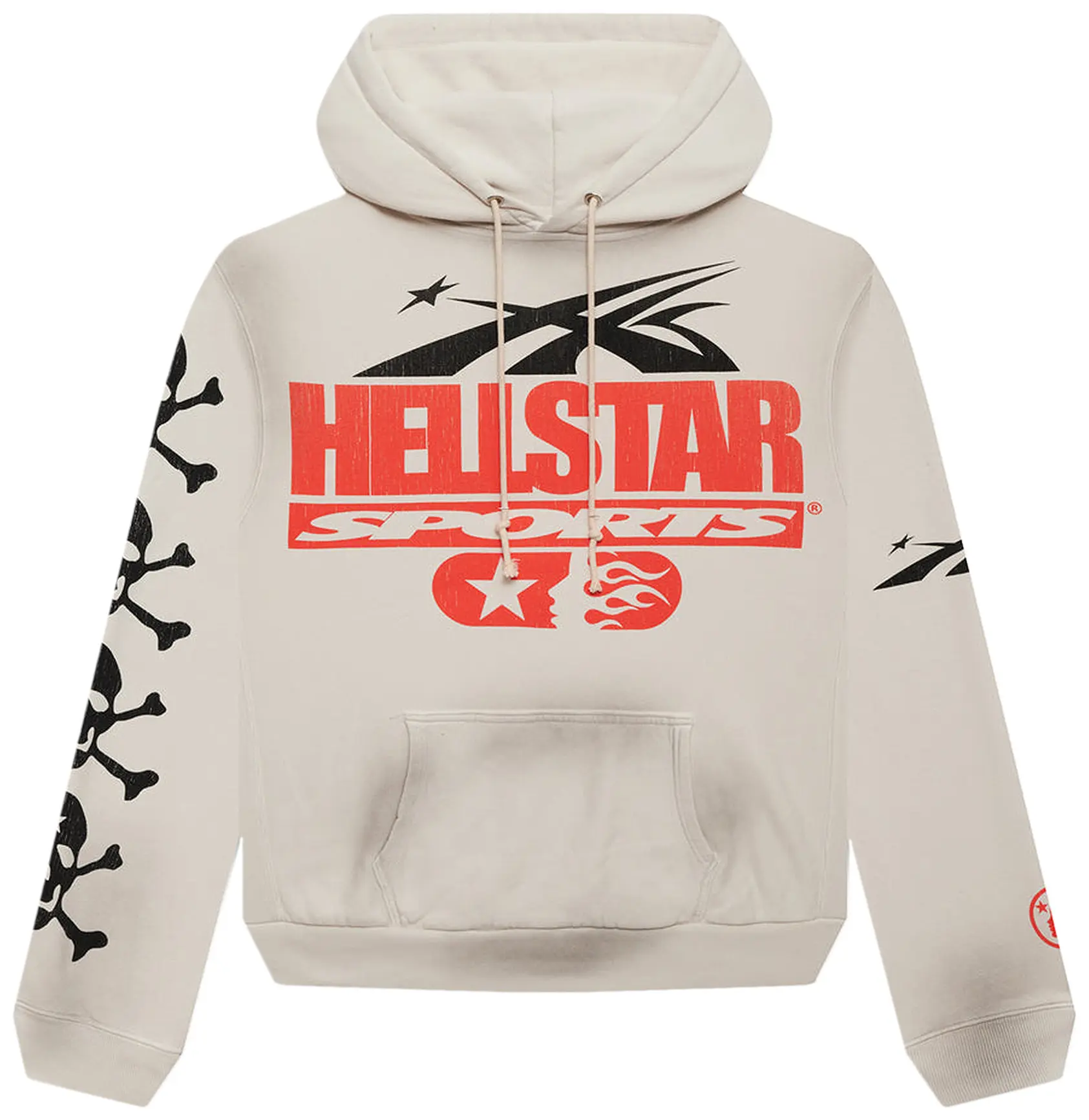 The Hellstar “If You Don’t Like Us, Beat Us!” Hoodie in White flips the script on tough-talk streetwear with its clean, garment-dyed white canvas. Front and center sits the bold Hellstar Sports logo in contrasting black and fiery red, while the right sleeve features a row of edgy black crossbones. On the back, the defiant mantra “IF YOU DON’T LIKE US, BEAT US!” bursts in heavyweight black and red type, making this fleece a statement piece built for both comfort and attitude.
