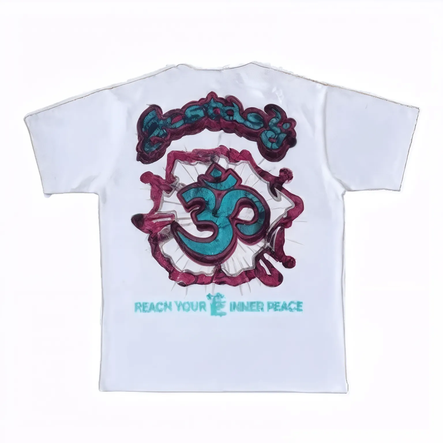 Find your zen with the Hellstar Studios Skeleton White Tee. This graphic tee features a meditative skeleton centerpiece framed by vibrant sunrise hues and flowing Yogic silhouettes—perfect for blending street edge with spiritual style.