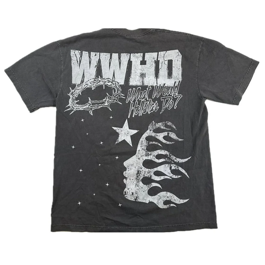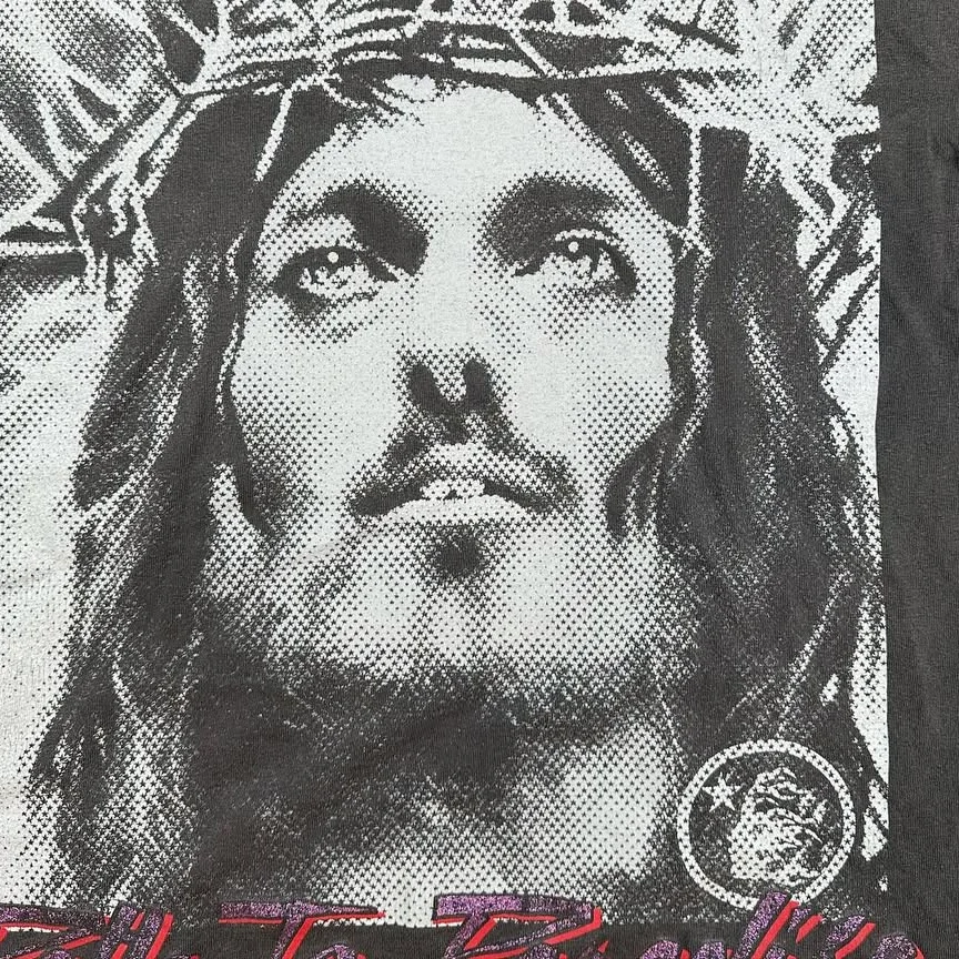 Make a statement in the Hellstar Studios Son Of God Tee in Black. Featuring a bold, screen-printed portrait of Christ crowned in barbed wire, this tee fuses edgy streetwear style with a powerful, contemplative graphic that demands attention.