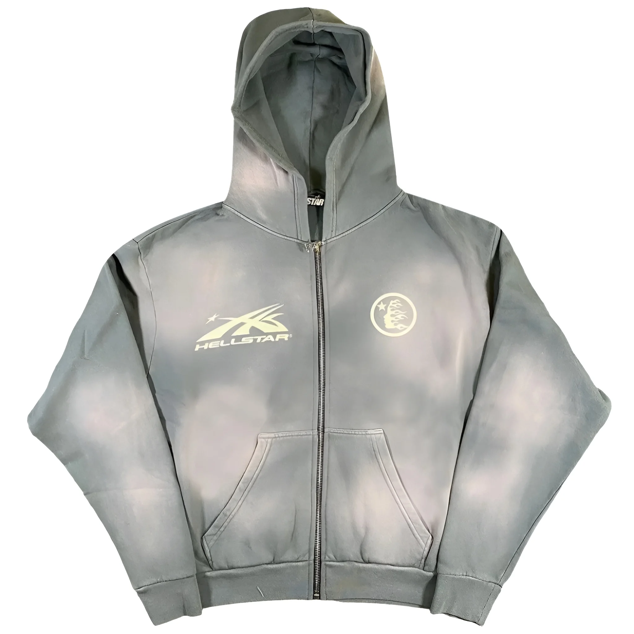 Update your layering game with the Hellstar Studios Zip Hoodie in Gray.