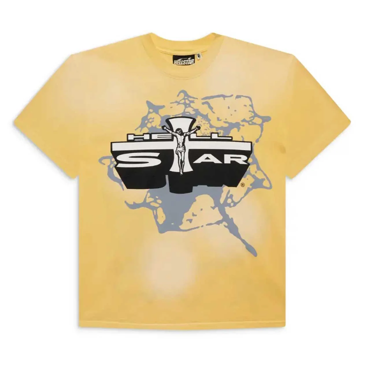 Make a bold statement in the Hellstar Versus T-Shirt in Yellow, a sunlit tee featuring high-contrast black & slate grey “versus” graphics for an edgy, arena-ready look.
