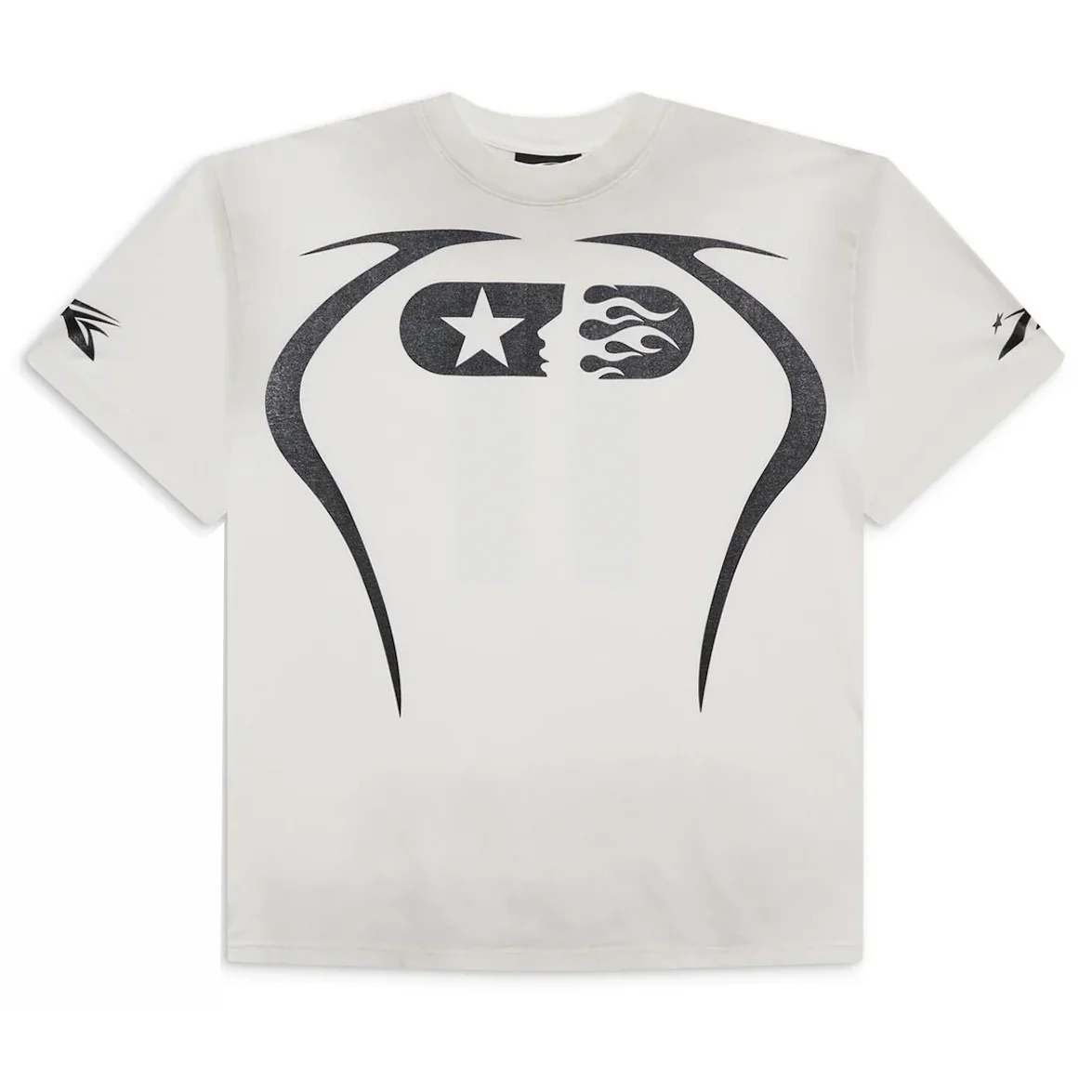 Elevate your basics with the Hellstar Warm Up T-shirt in White. Featuring bold black heat-pressed graphics and a relaxed fit, this premium tee merges athletic edge with everyday wearability.